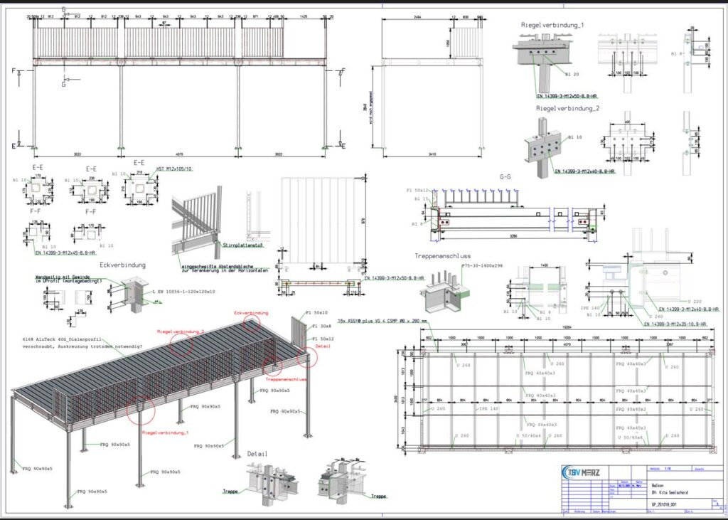 Diese Beispiele zeigen, wie wir Konstruktionen detailliert darstellen und Planungen so aufbereiten, dass sie für Fertigung, Montage und Abstimmungen optimal genutzt werden können